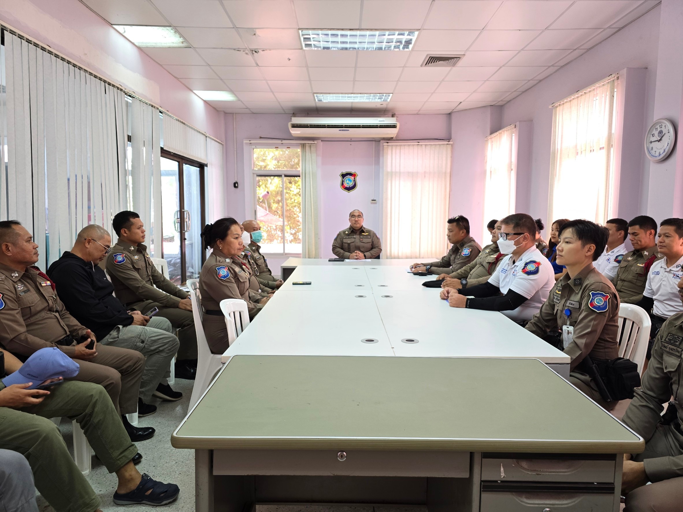 วันที่ 31 พ.ค.67 เวลา 13.30 น. พ.ต.ต.อนาวิน เฟื่องอารมย์ สว.ส.ทท.5 กก.2 บก.ทท.1 ประชุมบริหารสถานีประจำเดือน ชี้แจงข้อสั่งการ นโยบายของผู้บังคับบัญชาให้แก่ข้าราชการตำรวจ และเจ้าหน้าที่ช่วยเหลือตำรวจท่องเที่ยวในสังกัด ชี้แจงการปฏิบัติหน้าที่ในการอำนวยความสะดวกและรักษาความปลอดภัยประชาชนและนักท่องเที่ยว การตรวจราชการ ประจำปีงบประมาณ พ.ศ.2567 โดยให้เจ้าหน้าที่ที่เกี่ยวข้องจัดเตรียมข้อมูลและสถานที่ เพื่อรอรับการตรวจจาก บก.ทท.1 , บช.ทท. และจเรตำรวจ
