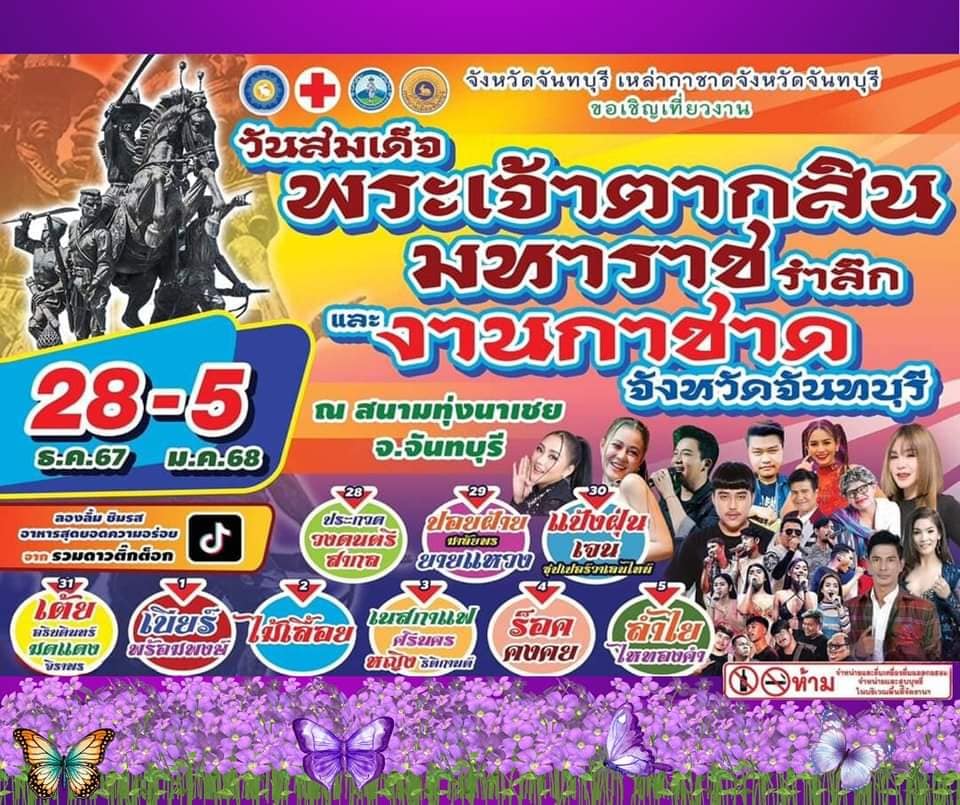 ขอเชิญเที่ยวงานวันสมเด็จพระเจ้าตากสินมหาราชรำลึก และงานกาชาดจังหวัดจันทบุรี ประจำปี 2568