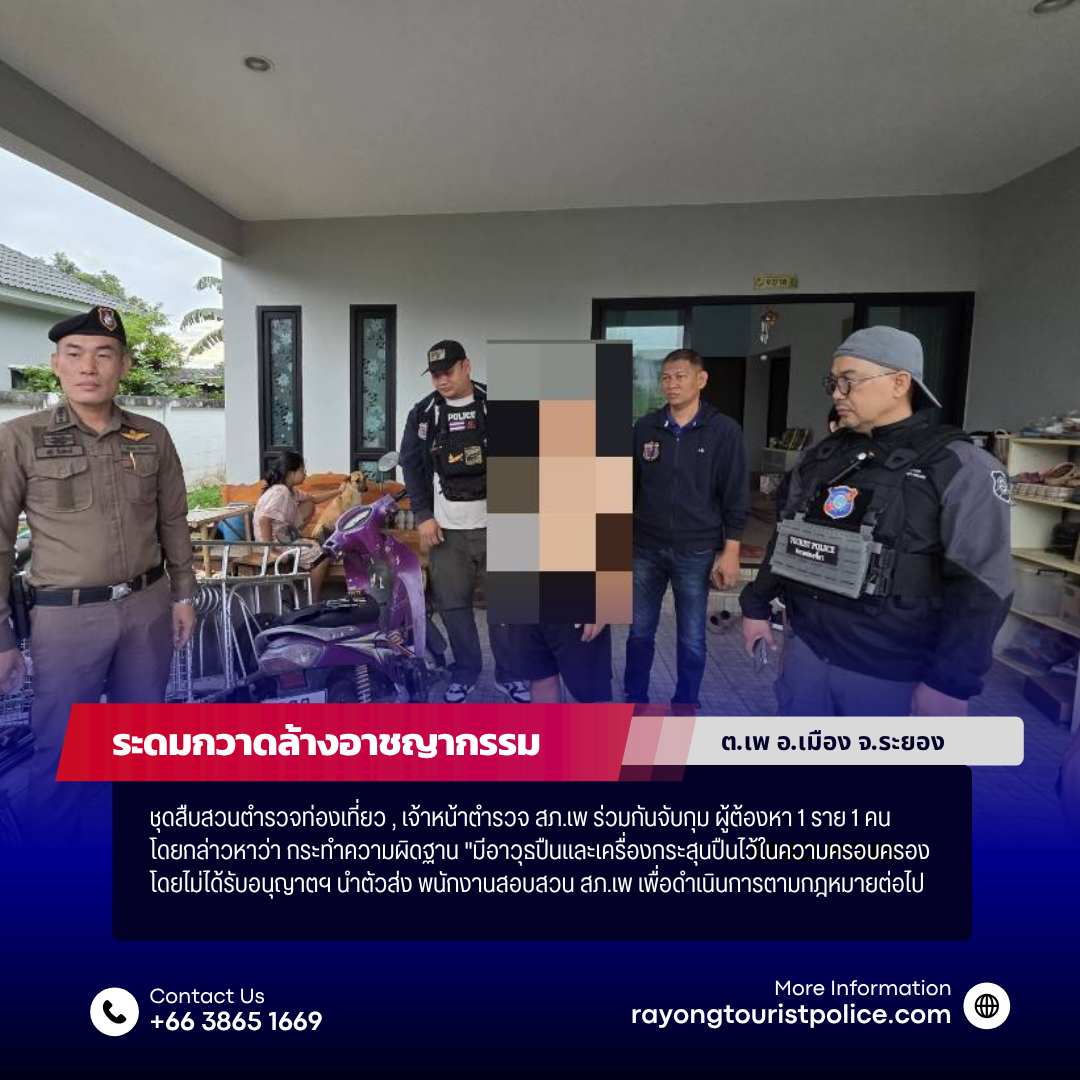 หน้าแรกUncategorized Uncategorized จับกุมผู้ต้องหา พ.ร.บ.อาวุธปืน 1 ราย By admin 31 ตุลาคม 2025 0 6 FacebookTwitterPinterestWhatsApp ชุดสืบสวนตำรวจท่องเที่ยว , เจ้าหน้าตำรวจ สภ.เพ ร่วมกันจับกุม ผู้ต้องหา 1 ราย 1 คน โดยกล่าวหาว่า กระทำความผิดฐาน “มีอาวุธปืนและเครื่องกระสุนปืนไว้ในความครอบครองโดยไม่ได้รับอนุญาตฯ นำตัวส่ง พนักงานสอบสวน สภ.เพ เพื่อดำเนินการตามกฎหมายต่อไป Tagsสืบสวน แบ่งปัน FacebookTwitterPinterestWhatsApp บทความก่อนหน้านี้ชาวต่างชาติ “ซึ้งใจ” ตำรวจท่องเที่ยวระยองทำหน้าที่เป็นสื่อกลางช่วยเหลือ admin Related Articles Uncategorized ชาวต่างชาติ “ซึ้งใจ” ตำรวจท่องเที่ยวระยองทำหน้าที่เป็นสื่อกลางช่วยเหลือ Uncategorized การจัดนำเที่ยว/ทำทัวร์ ต้องมีใบอนุญาต Uncategorized ช่วยเหลือ นทท.ต่างชาติ นำส่งกลับที่พัก Latest Articles Uncategorized ชาวต่างชาติ “ซึ้งใจ” ตำรวจท่องเที่ยวระยองทำหน้าที่เป็นสื่อกลางช่วยเหลือ Uncategorized การจัดนำเที่ยว/ทำทัวร์ ต้องมีใบอนุญาต Uncategorized ช่วยเหลือ นทท.ต่างชาติ นำส่งกลับที่พัก Uncategorized Line Official Account : Royal Thai Police Uncategorized เปิดรับสมัครตำรวจเพื่อแต่งตั้งเลื่อนชั้นเป็นตำรวจชั้นสัญญาบัตร 700 อัตรา โหลดเพิ่มเติม