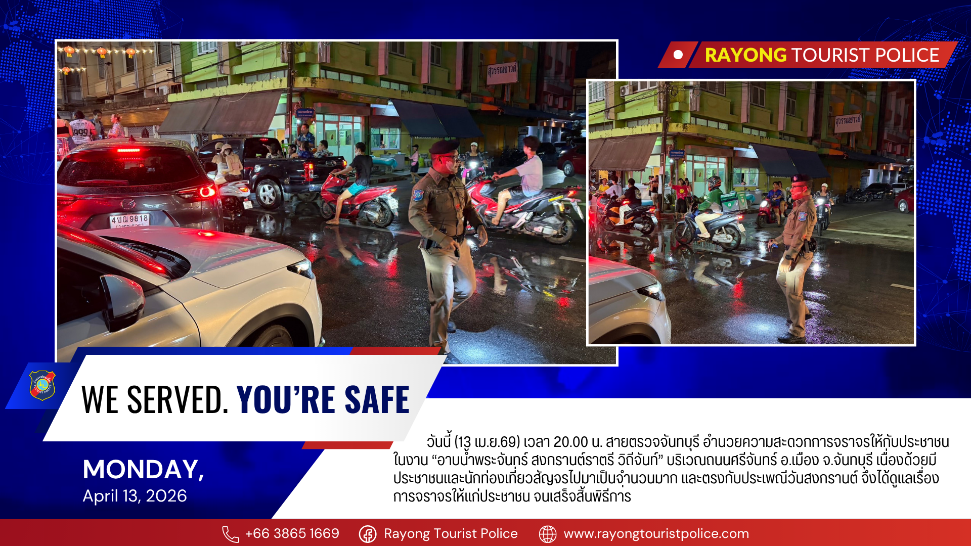 วันนี้ (13 เม.ย.69) เวลา 20.00 น. สายตรวจจันทบุรี อำนวยความสะดวกการจราจรให้กับประชาชน ในงาน