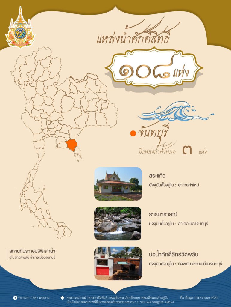 จังหวัดจันทบุรี มีแหล่งน้ำศักดิ์สิทธิ์ 3 แห่ง