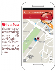 นอกจากสามารถแจ้งเบาะแสผ่านทางหน้ารายงานเหตุ i lert ได้แล้ว ยังสามารถโทรหาตำรวจผ่านทาง i CALL บนตัวแอพ หรือแชตคุยสดๆถึงตำรวจ ผ่านทาง i chat maps ถึงทีมงาน Police i lert u ได้ด้วย